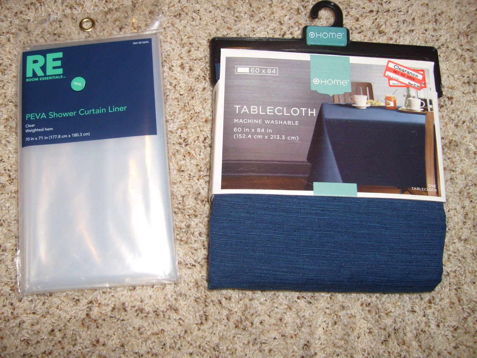 I decided to make my own over the door hangers to increase the amount of storage area. First, I found a tablecloth on sale for $3.88 at target!